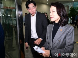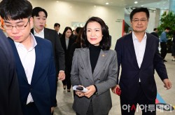 전현희 더불어민주당 수석 최고위원이 28일 국회에서 현안 관련 기자간담회를 하기 위해 들어서고 있다.