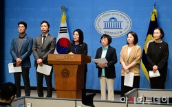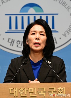 전현희 더불어민주당 수석 최고위원이 28일 국회에서 현안 관련 기자간담회를 하고 있다.