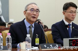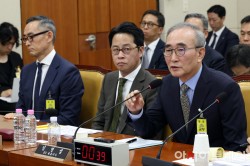 김영섭 KT 대표이사가 24일 국회 과학기술정보방송통신위원회에서 열린 대규모 해킹사고(통신·금융) 관련 청문회에서 의원 질의에 답하고 있다.