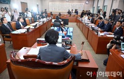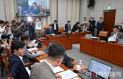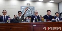 24일 국회 과학기술정보방송통신위원회에서 열린 대규모 해킹사고(통신·금융) 관련 청문회에서 윤종하 MBK파트너스 부회장(왼쪽부터)와 조좌진 롯데카드 대표이사, 김영섭 KT 대표이사가 자리하고 있다.