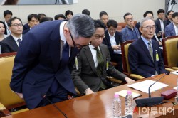 윤종하 MBK파트너스 부회장이 24일 국회 과학기술정보방송통신위원회에서 열린 대규모 해킹사고(통신·금융) 관련 청문회에서 인사하고 있다.