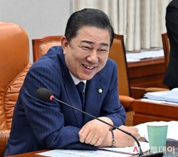 24일 국회에서 열린 운영위원회 전체회의에서 김병기 위원장이 밝게 웃고 있다.