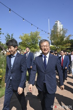 장인홍 구로구청장(가운데)이 26일 오후 서울 구로구 안양천 일대(구일역~도림천역)에서 열린 '2025 구로G페스티벌(아시아문화축제)x어울림정원 빛축제' 일환인 구로가든페스타에서 개막 선언을 하고 있다. 구로구는 올해로 22회째인 이번 축제 추진 방향을 구민이 함께 만드는 참여형 축제, 다양한 세대가 즐기는 공감형 축제, 아시아문화를 체험하는 아시아문화 축제로 정하고 안영천 곳곳에서 어울림 콘서트, 구로책축제, 아시아문화축제, 어울림정원 빛축제..
