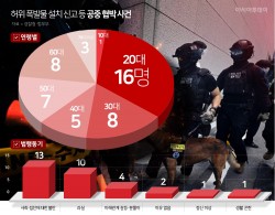 허위 폭발물 설치 신고 등 공중을 협박한 사건 중 절반은 2030세대가 저지른 것으로 나타났다. 29일 국회 법제사법위원회 소속 송석준 의원이 경찰청·법무부에서 제출받은 자료에 따르면 지난 3월 18일 공중협박죄가 시행된 이후 7월까지 4개월간 총 72건의 사건이 발생했고 이 중 49건에서 48명이 검거됐다.연령별로는 20대가 16명, 30대가 8명으로 전체의 절반(24명)을 차지했다. 이어 60대 8명, 50대 7명, 40대 5명, 70대..