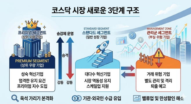 코스닥 ‘구조조정’ 들어간다...프리미엄·스탠다드·관리군..