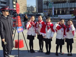 서울 광화문광장에서 28일 오전 열린 구세군 자선냄비 시종식(아래 사진). 시종식 공연에 참여한 뒤 기념촬영하는 어린이들. 구세군 자선냄비는 이날부터 12월31일까지 22억여 원을 목표로 모금을 시작한다./사진=황의중 기자