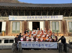 대한불교조계종 제24교구본사 고창 선운사는 지난달 30일 회향식을 봉행했다고 1일 밝혔다.졸업식인 이번 행사에는 15세 청소년부터 중장년층까지 남성 6명·여성 5명 등 모두 11명이 참여했다. 이번 단기출가학교는 지난달 21일 삭발식·입학고불식을 시작으로 10일 동안 진행됐다. 행사는 일반 템플스테와 체험형 프로그램과 달리 '실제 출가 수행자들과 동일한 강도'로 진행됐다. 참가자들은 새벽 4시 기상해 108배 참회, 삼시예불, 울력, 발우공양..