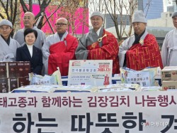 한국불교태고종이 겨울철을 맞아 미혼모 가족들과 해병대전우회에 따듯한 사랑을 전했다.태고종은 3일 총무원 청사가 있는 서울 종로구 법륜사에서 '이웃과 함께하는 따뜻한 겨울나기' 행사를 열고, 한국미혼모가족협회와 해병대전우회에 김장김치·라면·화장지 각각 100박스 등 총 300박스의 지원물품을 전달했다. 이날 행사에는 총무원장 상진스님, 불교문예원장 지허스님, 행정부원장 도성스님을 비롯한 태고종 주요 스님들과 해병대 전우회·한국미혼모가족협회 관계..