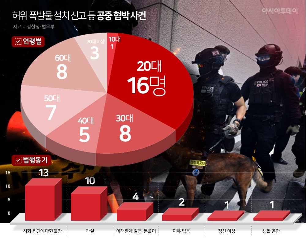 범행 동기는 '사회·집단에 대한 불만'이 13명으로 전체 3분의 1을 차지했다.