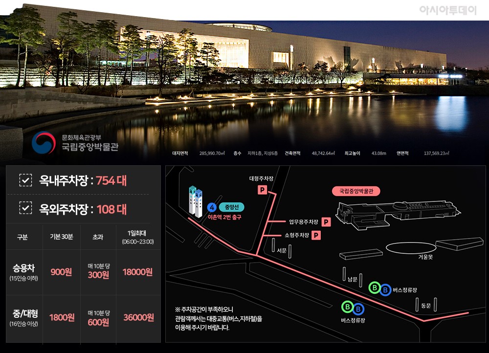 국립중앙박물관은 최근 공식 누리집을 통해 주차요금 인상을 공지했다.