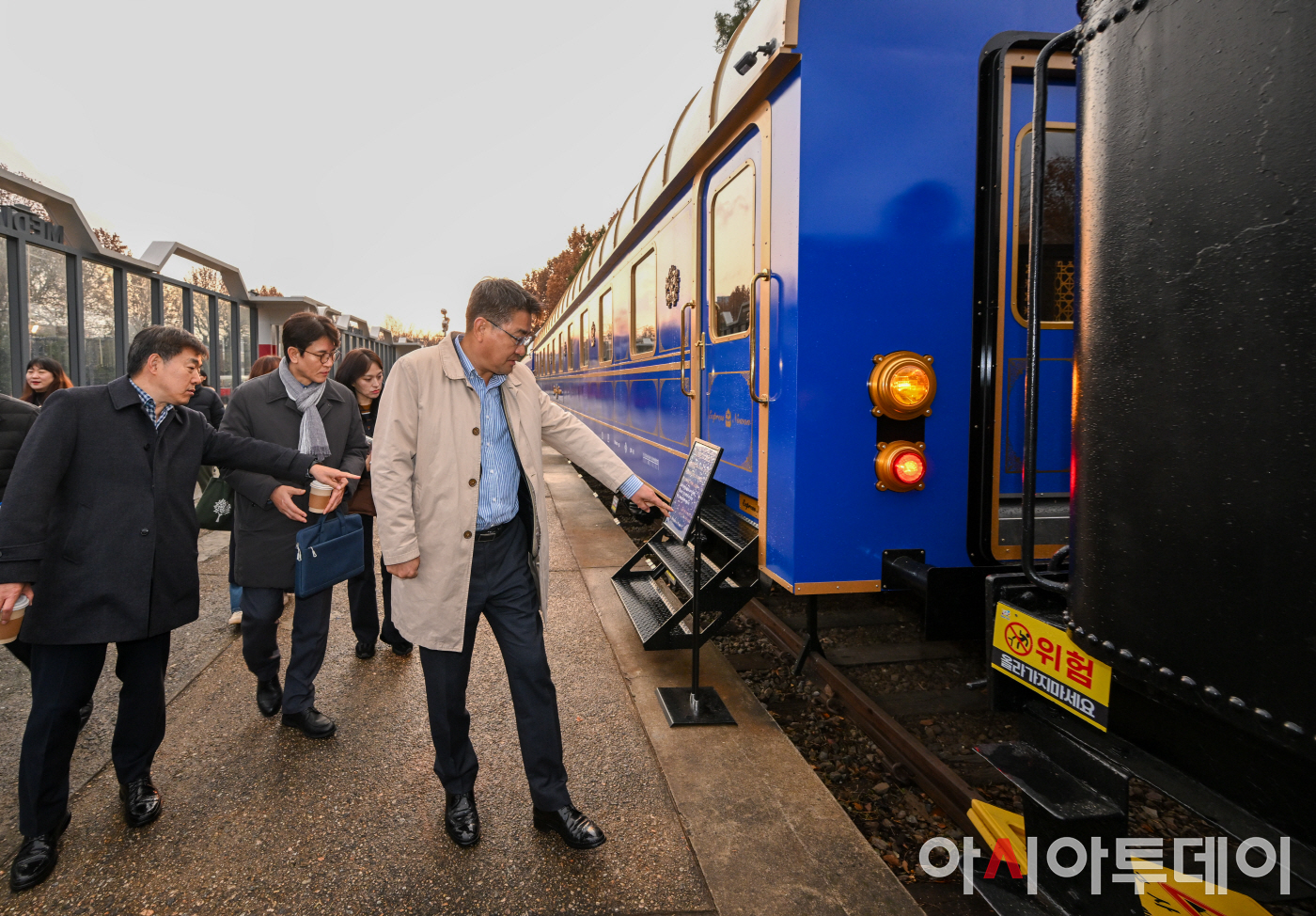 오승록 노원구청장이 27일 오후 서울 노원구 공릉동 화랑대철도공원 내 개장 예정인 유럽풍 특급열차 레스토랑 ‘익스프레스 노원 by 미라쥬’를 찾아 관계자들과 함께 현장점검을 하고 있다. ‘익스프레스 노원 by 미라쥬’ 1량은 영화 세트 전문가가 특수 제작하고 1량은 무궁화호 객차를 리모델링해 주방 및 운영 공간으로 구성했다. 내부는 정교한 문양과 샹들리에, 유럽풍 소품으로 꾸며져 특급열차의 화려한 감성을 그대로 담아냈다. 레스토랑에서는 ‘태릉솔밭 갈비 파스타’, ‘불암산 리조또’ 등 노원만의 특색을 담은 메뉴를 선보일 예정이며, 지역 상권 활성화와 지역 명소화를 위해 로컬 브랜드 사업자와의 협업을 통해 운영한다. /정재훈 기자
