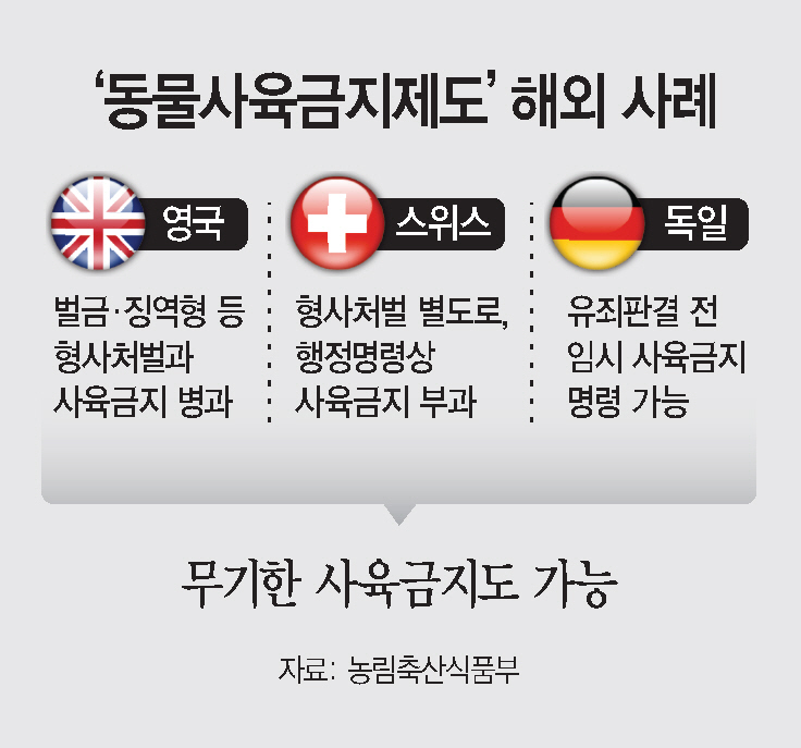 이들 국가의 공통점은 무기한 사육금지가 가능하다는 것이다. 사육금지 해제를 요청할 경우 입증책임을 학대 행위자에게 둬 향후 발생 가능한 피해를 예방하고 있다.