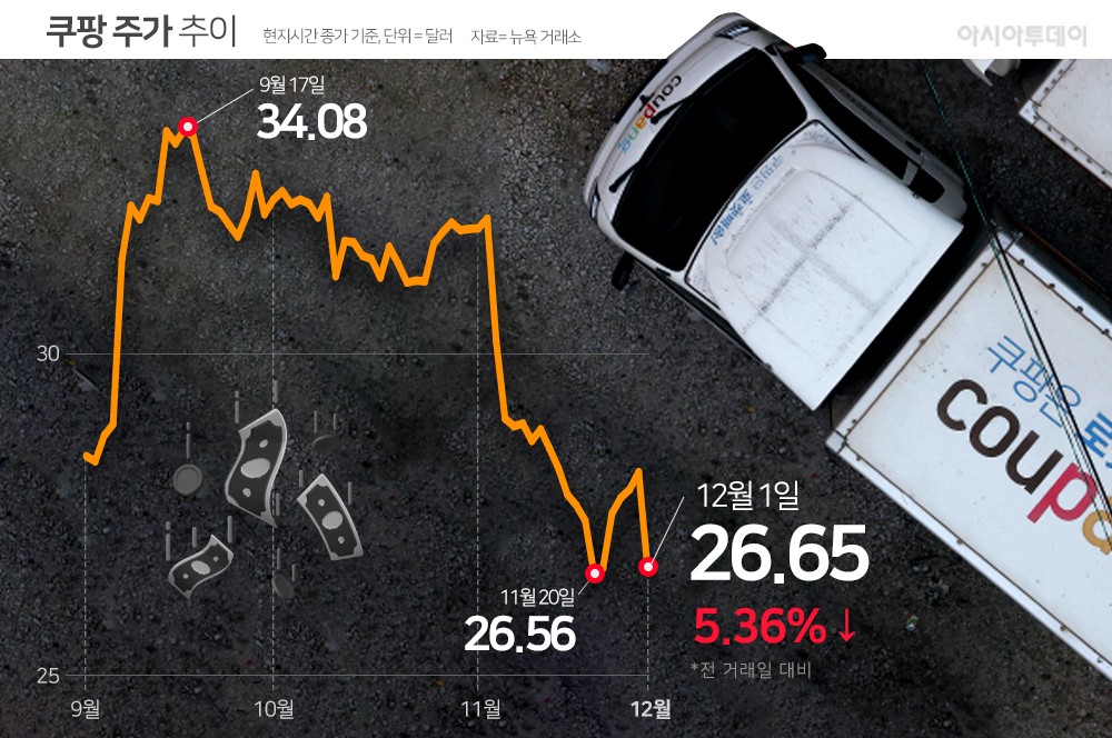쿠팡Inc는 지난 1일(현지시간) 뉴욕증시에서 전 거래일 대비 5.36% 하락한 26.65달러로 마감했다. 장중 낙폭은 7.21%까지 확대됐고, 프리마켓에서도 9%대 급락이 나타났다. 대규모 개인정보 유출 사실이 공개된 뒤 맞은 첫 거래일에 주가가 급락한 것으로 분석된다.