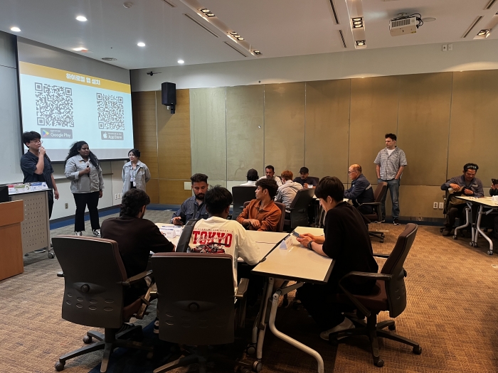 강사가 한국어로 강의하면 발표 화면인 메인 스크린에 최대 4개 언어의 번역 자막이 실시간으로 표시되는 다국어 동시 자막 기능을 지원한다. 근로자들은 QR코드 접속을 통해 스마트폰으로 40여 개 언어 중 모국어를 선택해 개인 화면에서 번역 내용을 바로 확인할 수 있다.